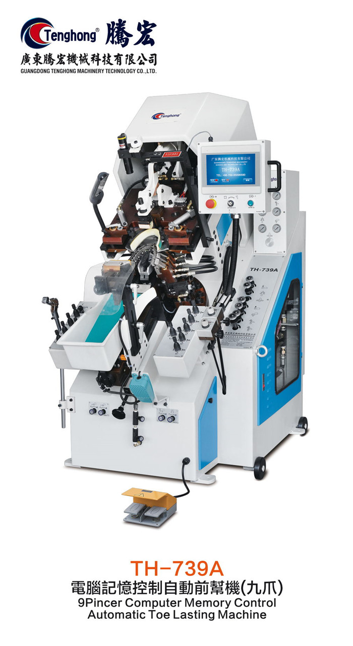 前帮机的处理的方法是首先在加热状态把喷胶器从绷帮座上拆下来,清除表面上的热熔胶,取中号鞋楦的底盘检测涂胶器上表面,标出接触不良的部位,并修磨出与鞋楦底盘相同的弧面,还应使喷胶器边缘略小于鞋楦楞边。同时,把已堵塞进喷胶孔或喷胶槽中的焦烧杂质清除干净。前帮机把修磨合格的喷胶器重新装到绷帮座上,再调整输胶量至最大量,喷胶不均匀的故障即可清除。